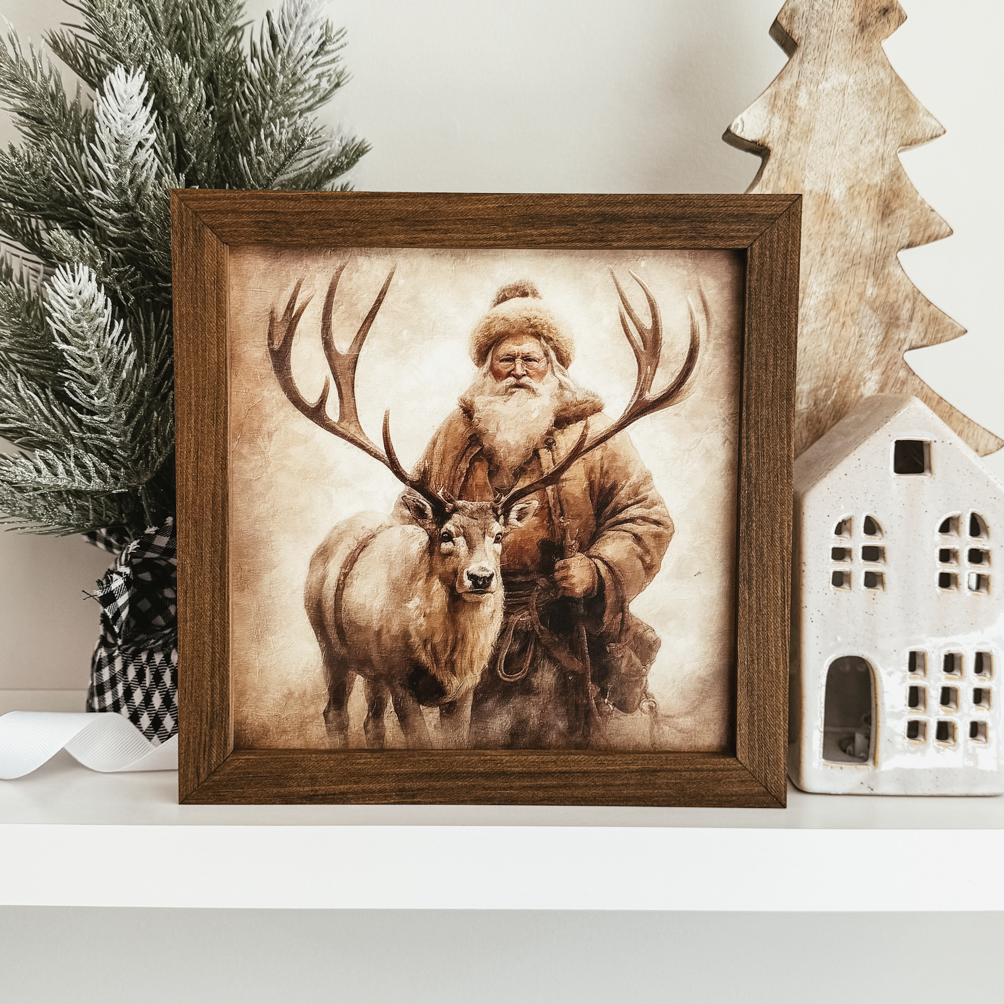 Santa & Reindeer Sign | Vintage Inspired Christmas Sign