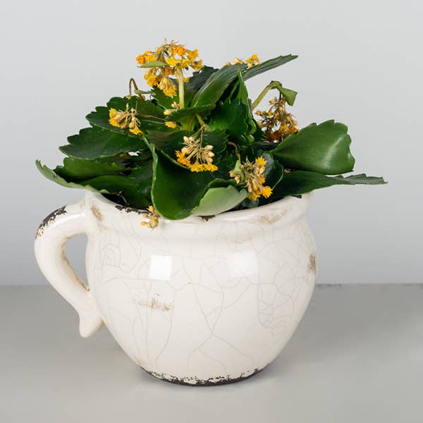 Ceramic flower pot. Antique/Vintage style.- antique cream colour- smooth glazed look with crackle- ceramic material- large size