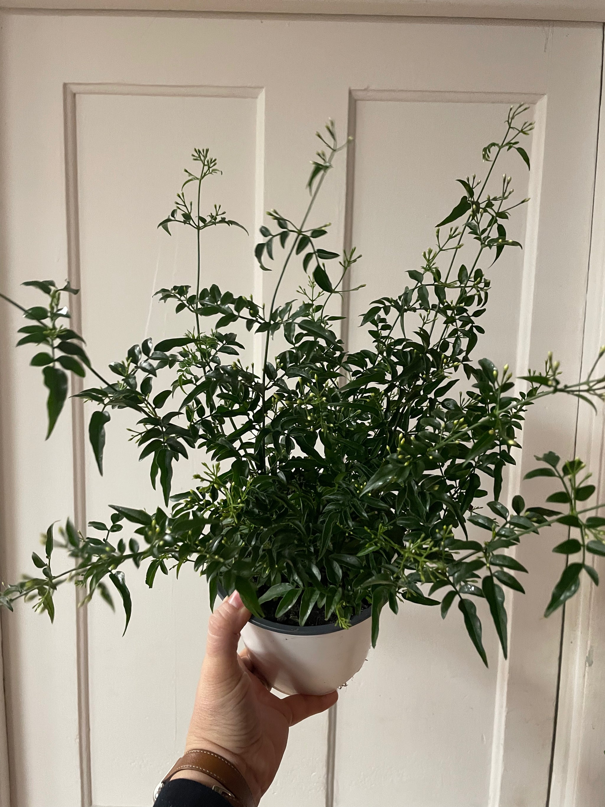 - Indoors, jasmine needs to stay cool with well-circulated air. Try to keep the temperature between 60 to 75 degrees Fahrenheit.