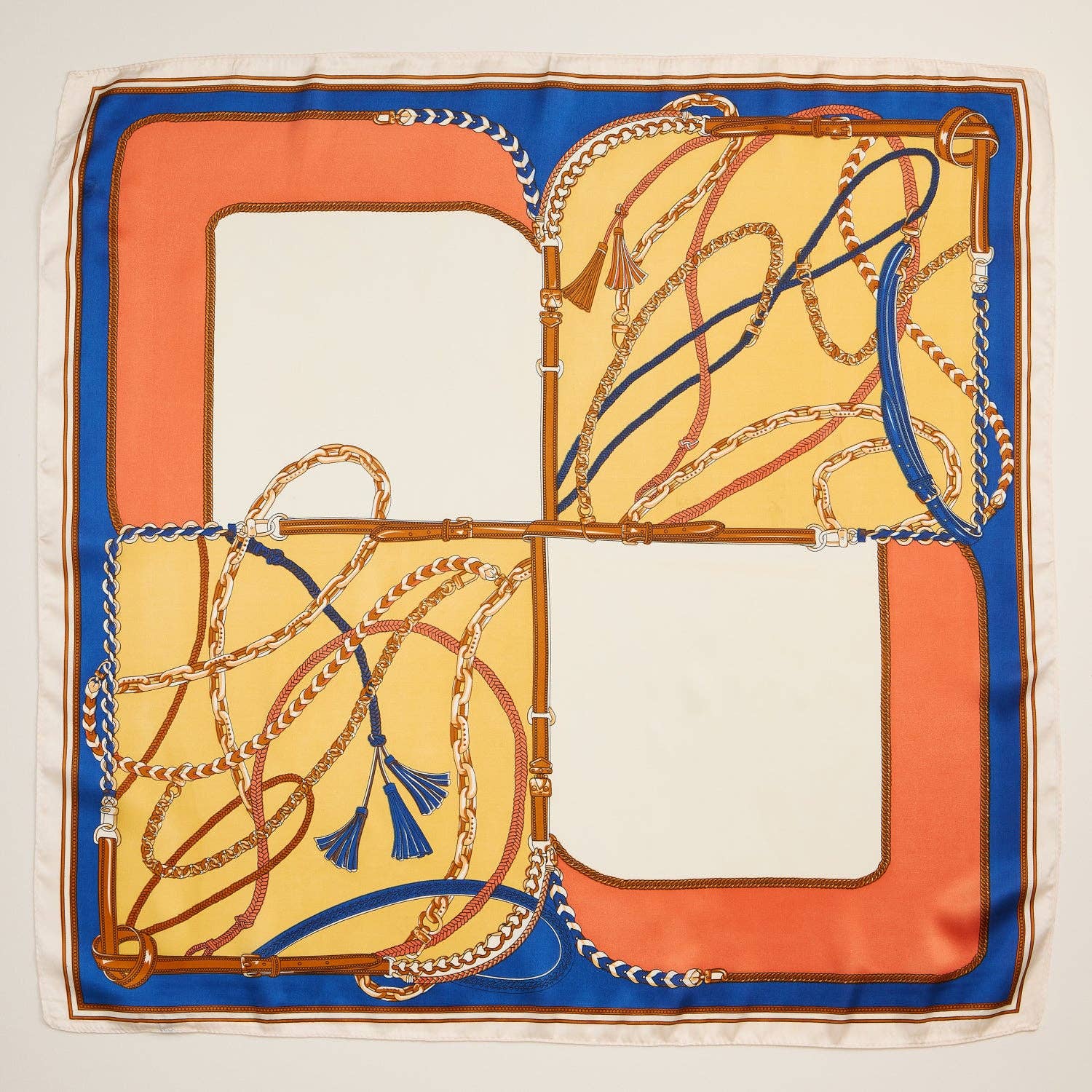 Equestrian Chain Print Scarf – Silk Texture Square Scarf for Elegant Styling